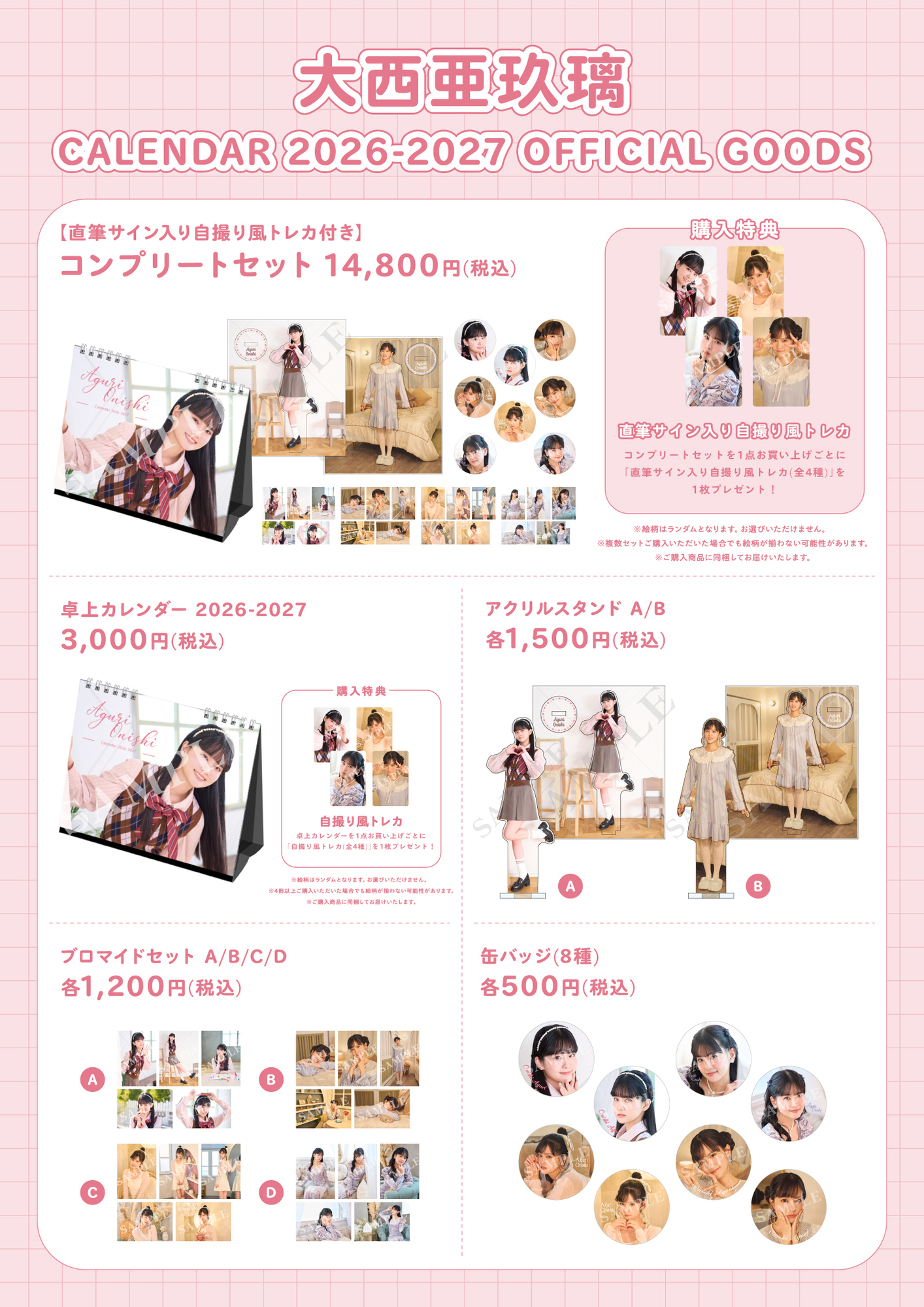 大西亜玖璃 2026-2027カレンダー&グッズの予約販売が決定しました!